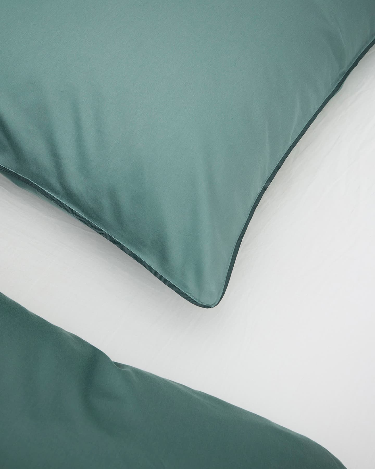 Strimmassa on ohut laivastonsininen tere, joka menee pussilakanan ja tyynyliinan ympäri, ja on käsinommeltu kokeneilta räätäleiltä. Tere on tehty kierrätetystä polyesteristä. Satiininen kangas antaa pehmeän ja joustavan tunteen kauniilla kiillolla.